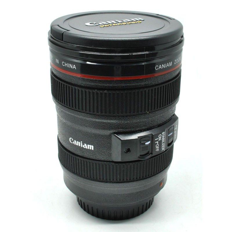 Untuk Anda yang hobi kamera dan fotografi, Lensa ini sangat cocok digunakan dirumah / dikantor. Bentuknya yang menyerupai lensa kamera terlihat sangat nyata dengan berbagai detailnya mulai dari tombol untuk fokus dan stabilizer hingga pegangan untuk zoom dan pengaturan focus yang menggunakan karet membuatnya seperti lensa sungguhan. Bahan dalamnya plastik (tidak bisa untuk Air Panas)