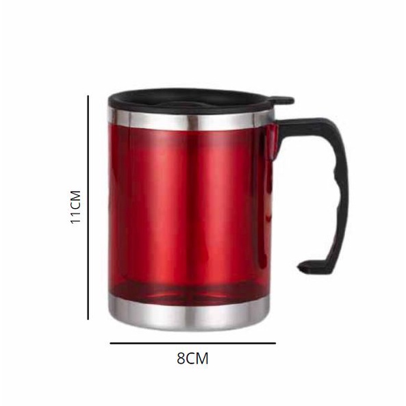 - Ukuran -/+450ml - Terbuat Dari Stainless Steel, Plastik Berkualitas - Dapat Dibawa Untuk Dikantor, Mobil dll. - Fungsi Mug Tetap Menahan Panas Dingin Minuman Anda - Cocok Untuk Dipakai Sendiri Atau Kado - Dimensi Diameter X tinggi ( 8,5 cm X 11 cm ) Warna: Merah, Biru, Hijau. ORDER QTY WAJIB RANDOM.