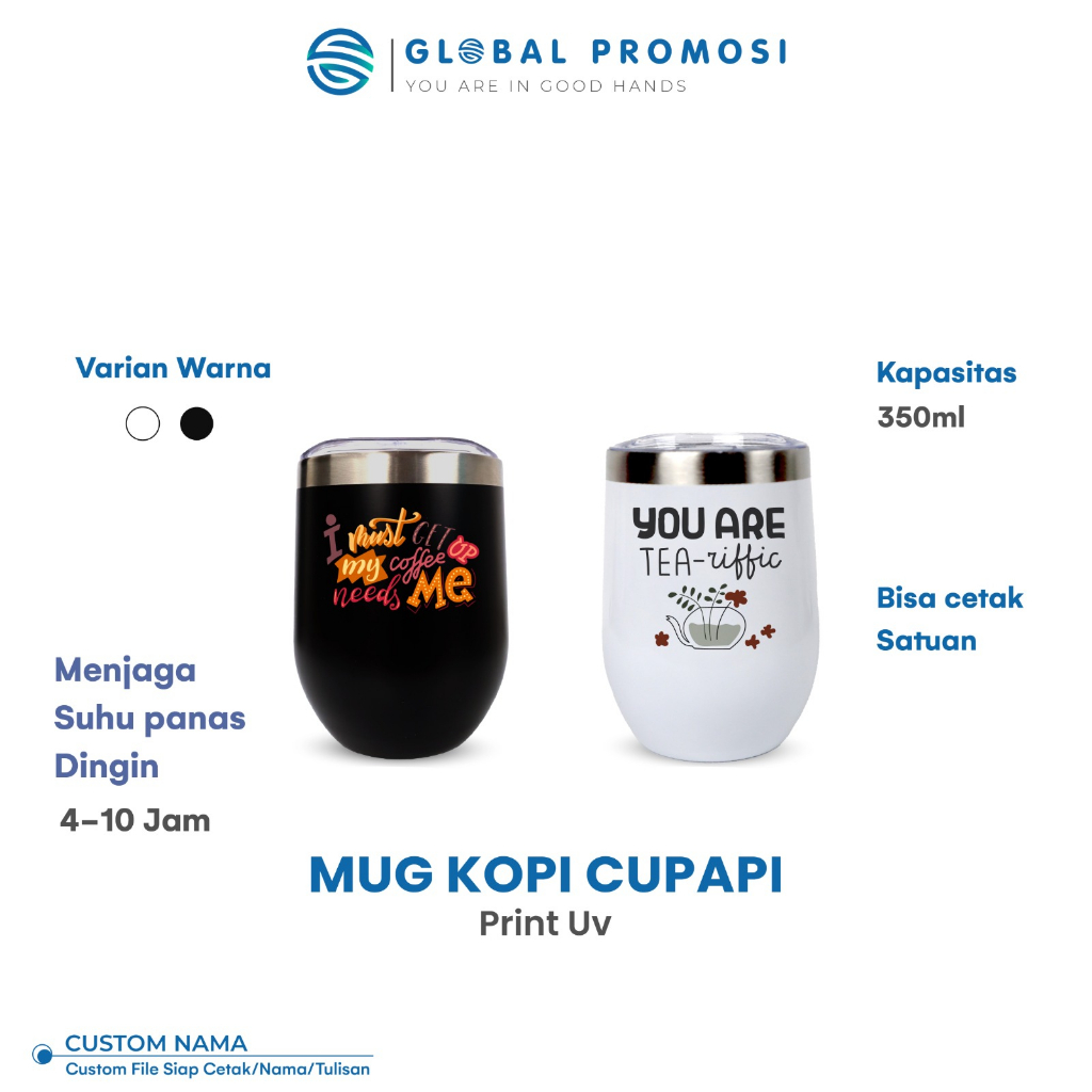 Gelas Mug Kopi Cupapi Custom Stainless Steel Print UV Cetak Full Color Design Bebas Nama/Logo/Karakter Souvenir Corporate Satuan