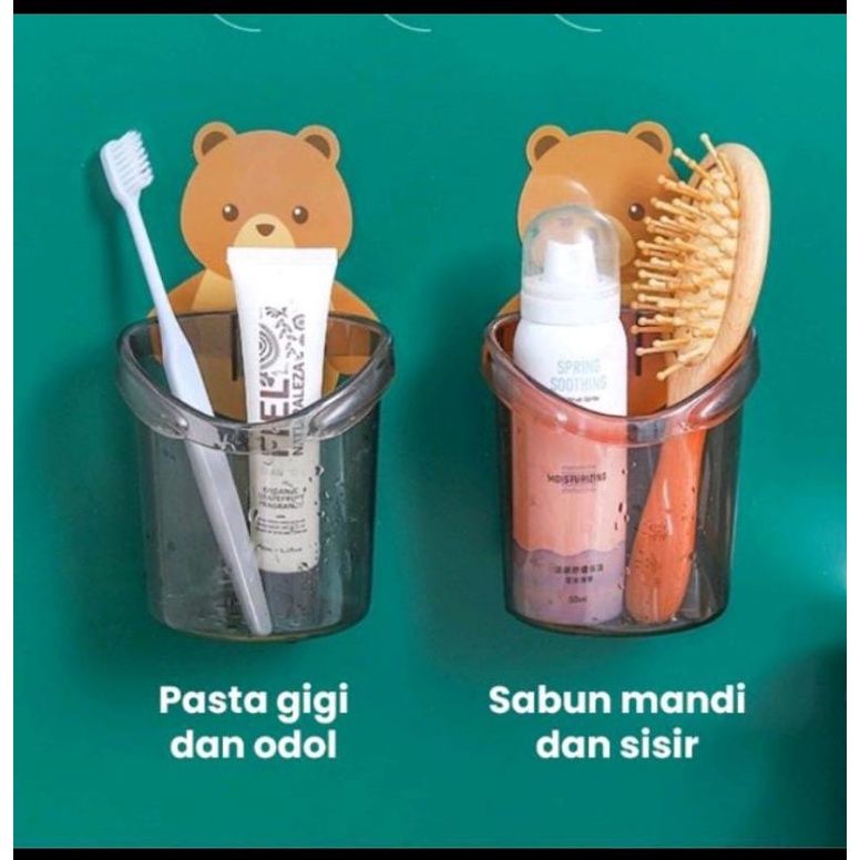 Gelas Tempel Motif Beruang / Gantungan Sikat Gigi Motif Beruang Gantungan tempel dengan sticker kuat bisa untuk menaruh sikat gigi, odol, cukuran, sisir dan barang kecil lain nya dikamar mandi anda. Daya lekat di design seperti stiker, sehingga dapat menempel lebih kuat dan tidak merusak dinding. Bisa di lepas pasang sesukanya tanpa paku dan bor, tidak akan meninggalkan bekas dan dapat di gunakan berkali kali. Jika permukaan kotor tinggal dicuci dengan air mengalir.