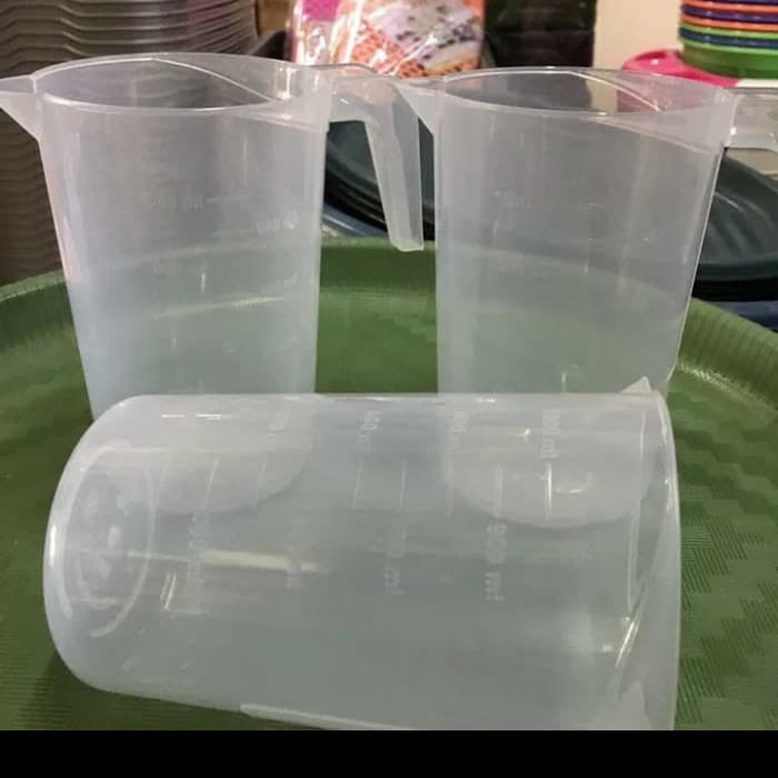 gelas ukur kapasitas 1 liter berbahan plastik order 1kg muat utuk 8ps