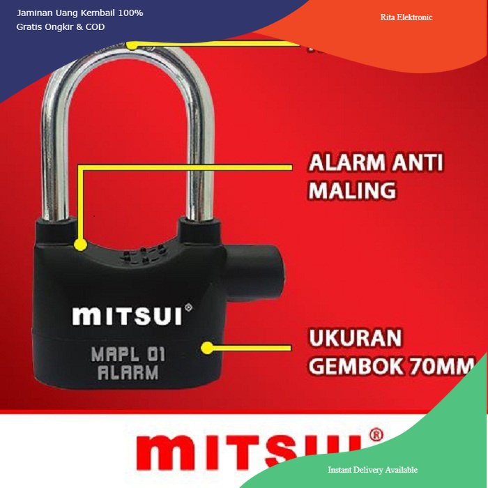 SETIAP PRODUK YANG RUSAK MERUPAKAN TANGGUNG JAWAB TOKOGEMBOK MITSUI MAPL 01 - GEMBOK ALARM PADLOCK 70 MM