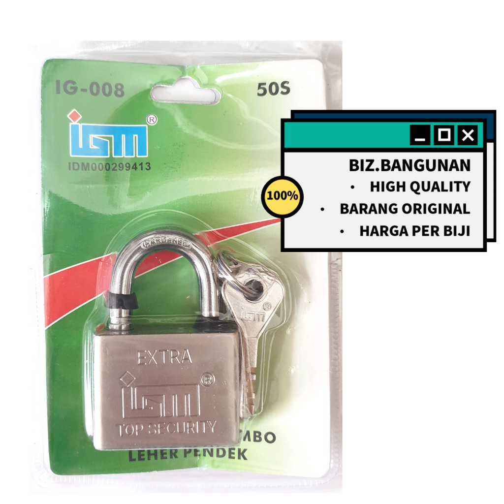 Detail GEMBOK KOTAK IGM LEHER PENDEK 50MM - RUMAH / PAGAR / MOBIL / GUDANG