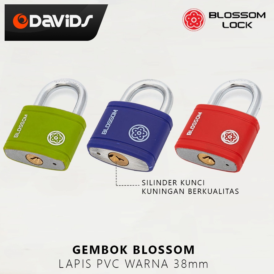 - PVC Coated Metal Padlock - Level Sekuriti : 7* - Merek Blossom - Tipe BX 01 - Warna: Merah, Biru, Hijau - Harga per pcs - Dengan material hardened steel di bagian leher gembok dan besi berkualitas untuk body gembok dan di lengkapi dengan silinder kunci kuningan serta 3 anak kunci satin nikel.