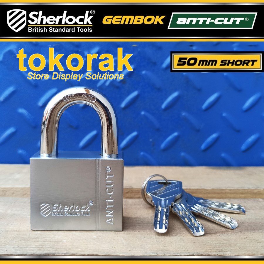 Detail GEMBOK SHERLOCK ANTI CUT 50 MM PENDEK GUDANG RUKO KANTOR RUMAH MOTOR