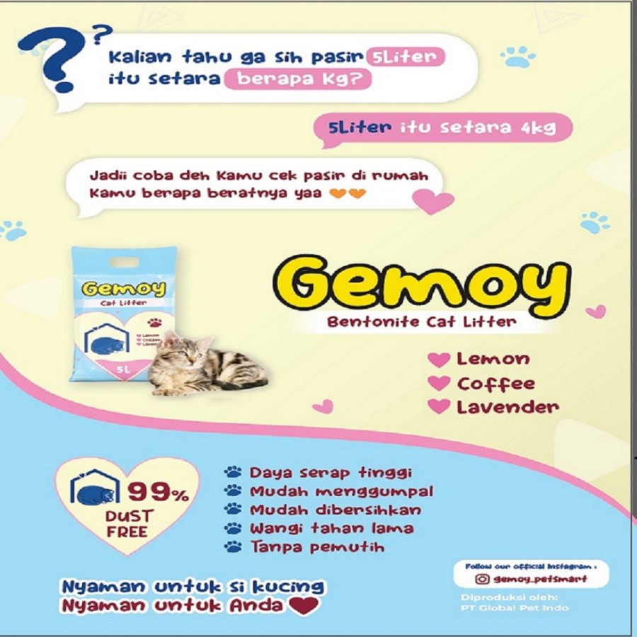 Gemoy 5L pasir gumpal kucing