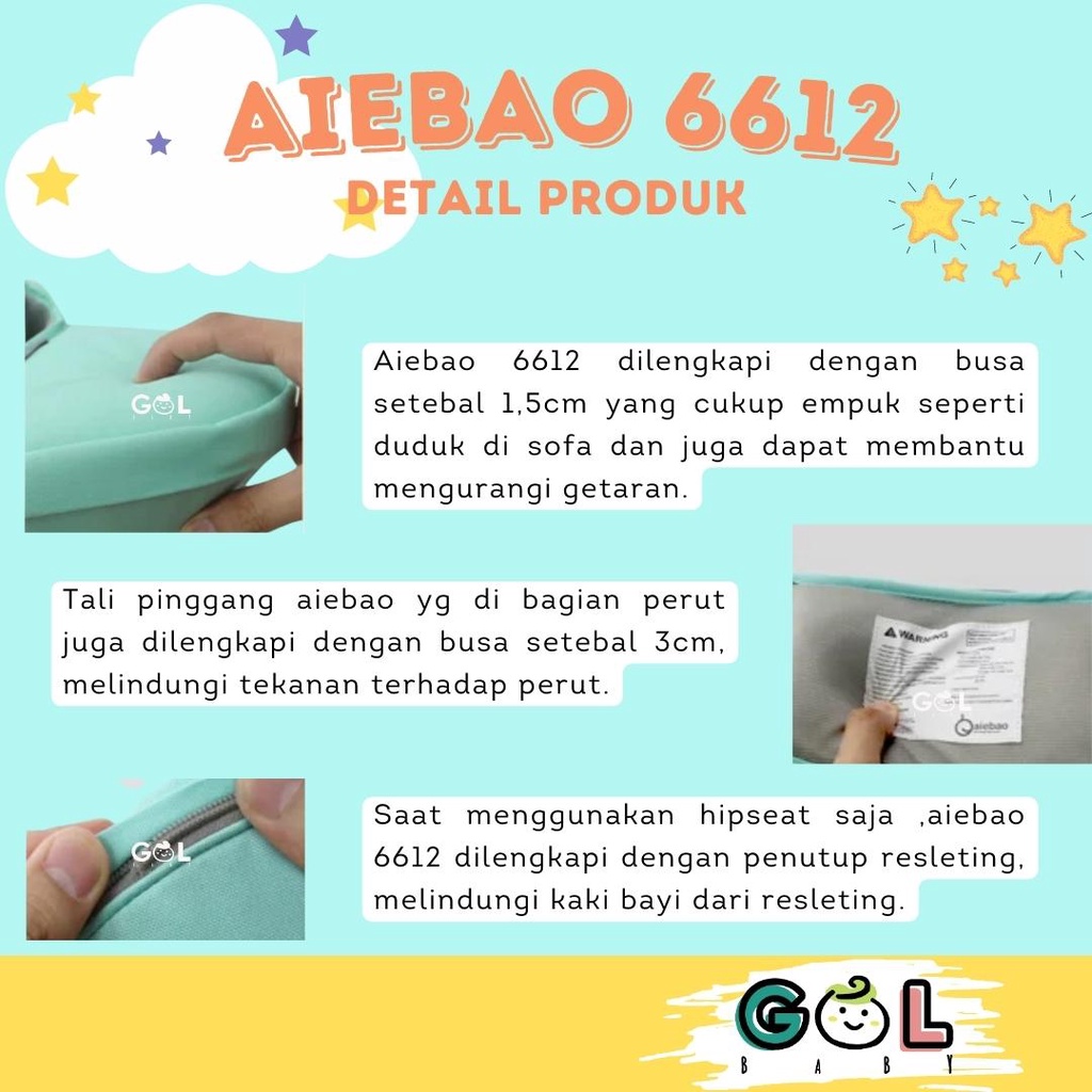 Fitur Gendongan Hipseat aiebao diamond 6612 : 1.Ada bantal duduk di gendongan, membuat anak dapat duduk dengan nyaman dan empuk. 2. Bisa 11 posisi gendongan 3.Tempat duduk bisa dilepas , bisa dipake gendongan saja(ssc) 4. Design baru pada bukaan depan lebih praktis dan nyaman. 5. Untuk anak usia 0-36 bulan berat maximal 20 kg. 6. Jaring udara meningkatkan sirkulasi udara sampai 70% 7. Mencegah kaki bayi dari bentuk O 8. Kemiringan dudukan 35 derajat , nyaman untuk si kecil 9. Pengamanan double safety 10. Side pocket besar 11. Fitur baru pengaman gesekan paha anak 12. Tali pinggang bs diperbesar sampai 110 cm 13. Free dustbag 14. Terdapat extension tambahan bisa sampe 135cm (dijual terpisah)