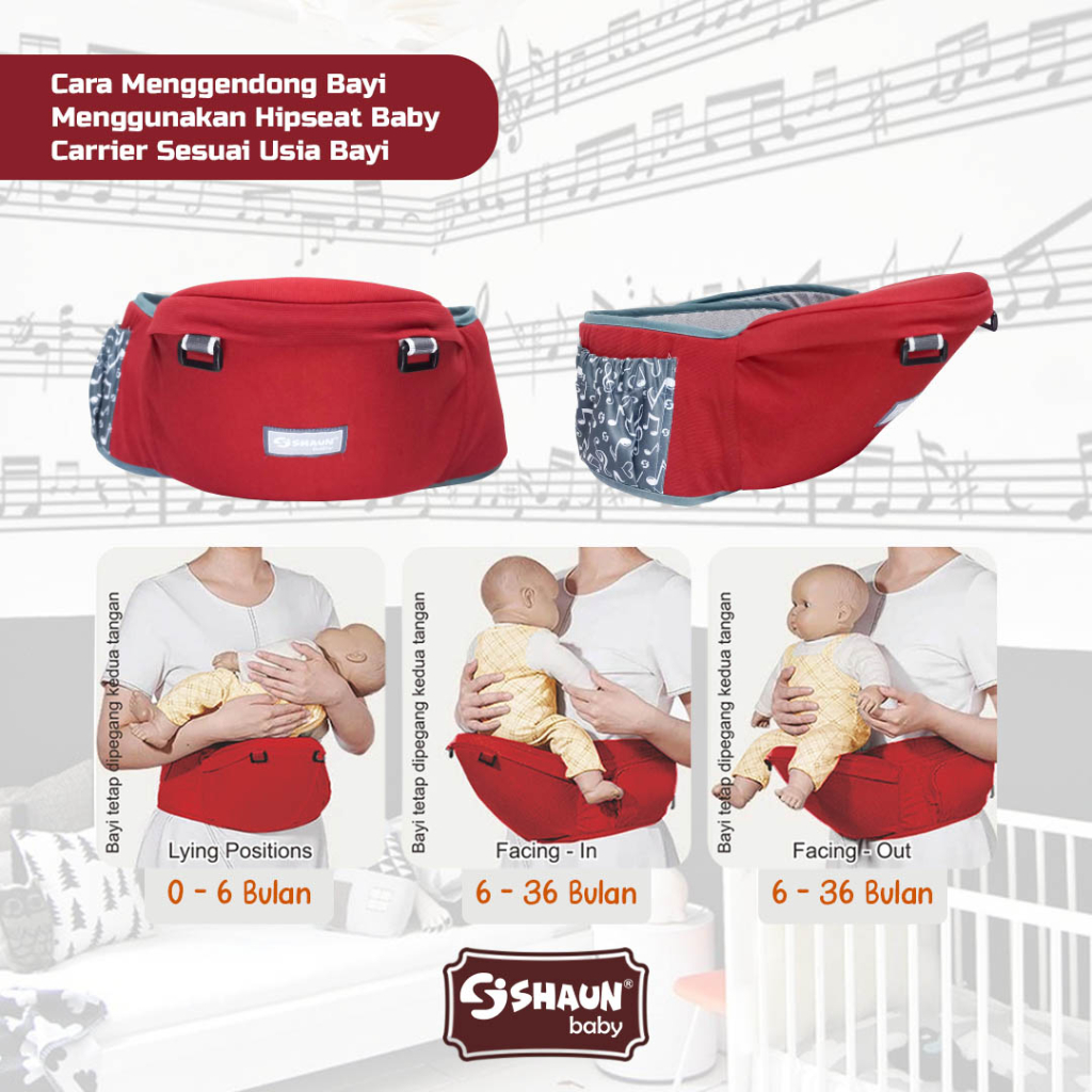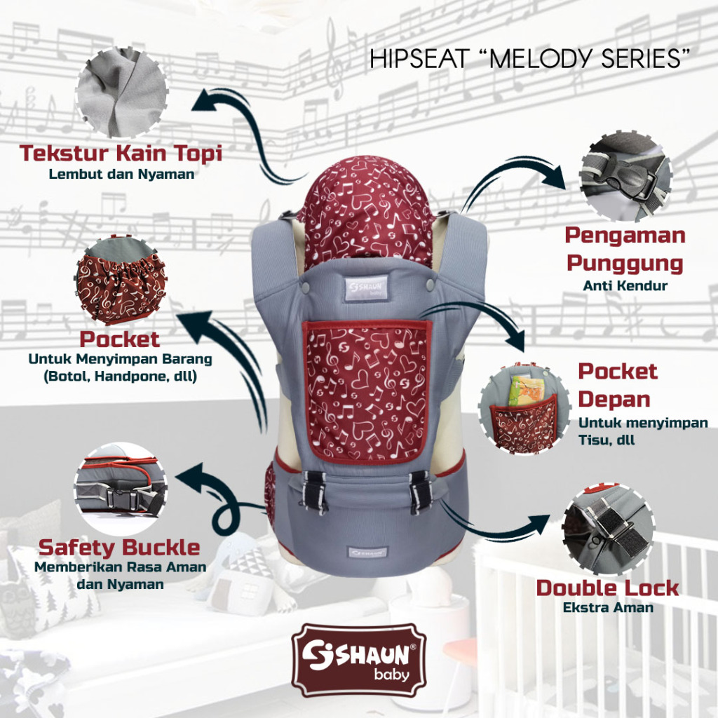 Detail Gendongan Bayi Depan Duduk 7in1 Posisi + Penutup Kepala HipSeat Multi Fungsi Series Melody ShaunBaby