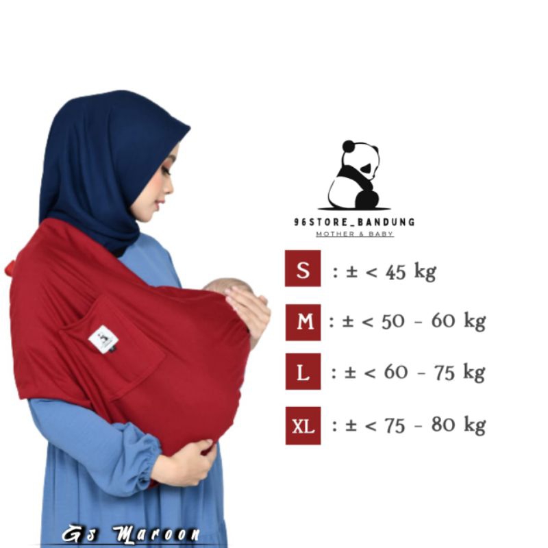 Fiture dan Manfaat : - Bisa dipakai untuk menggendong bayi dari baru lahir (new born) sampe usia ± 3 tahunan, maksimal BB bayi/ anak 17Kg; - Bisa digunakan menggendong 2 (dua) posisi yaitu C-shape dan J-shape; - Simpel, Praktis dan mudah dipakai; - Terdapat Saku yang berfungsi untuk menyimpan barang baik untuk botol susu, HP ataupun barang lainnya; - Terbuat dari bahan kaos premium berkualitas; - Bahan lentur, kokoh, aman, tidak melorot dan kuat; - Anti pegal dipunggung; - Anti alergi tidak panas & menyerap keringat