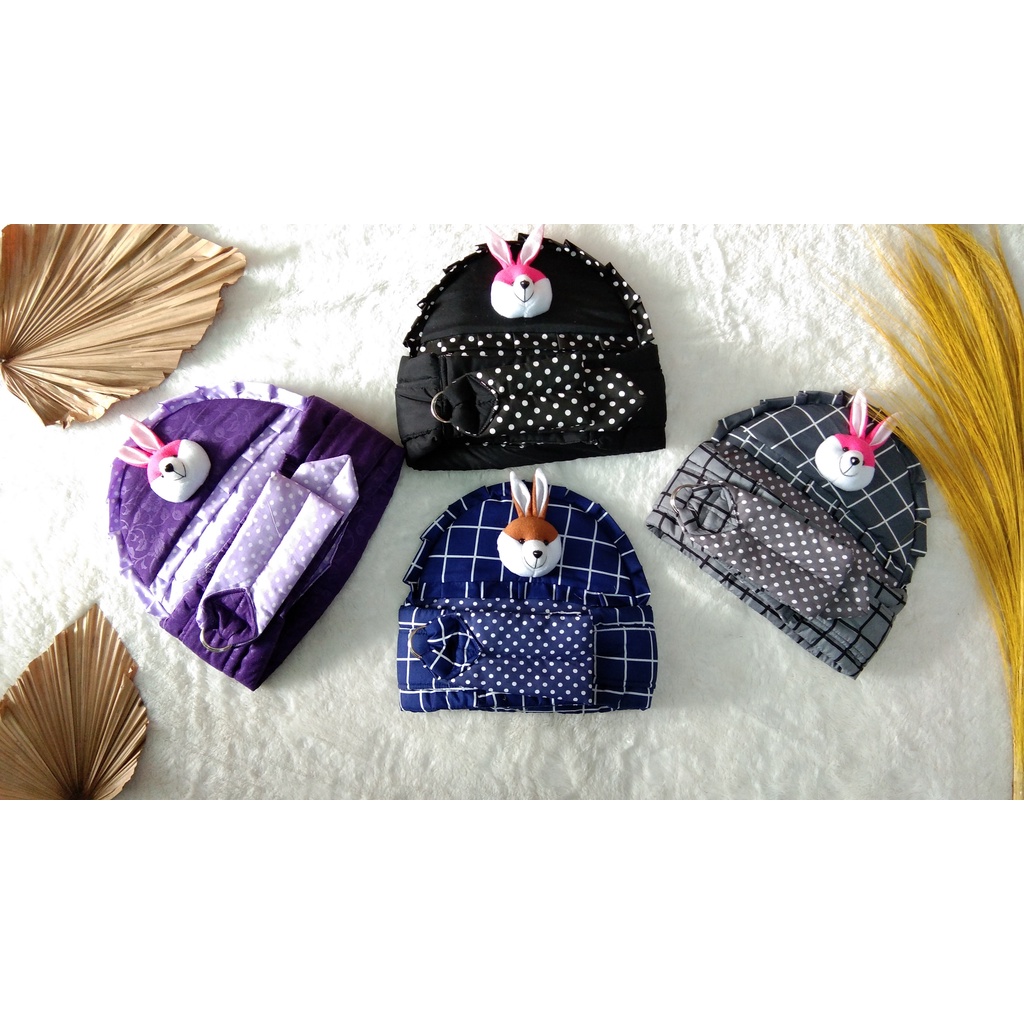 GENDONGAN Bayi Samping boneka kelinci ada topi ADA RING TALI PENGUNCI /-Panjang gendongan 157cm WARNA NAVY PINK TOSKA COKLAT