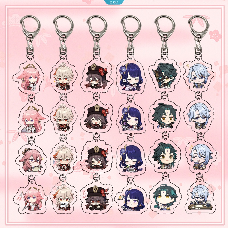 Genshin Dampak Tali Gantungan Kunci Hu Tao Venti Pengembara-Scaramouche Xiao Ganyu Zhongli Q Versi 4 Tas Tali Pesona Gantungan Kunci Siswa [ZK]