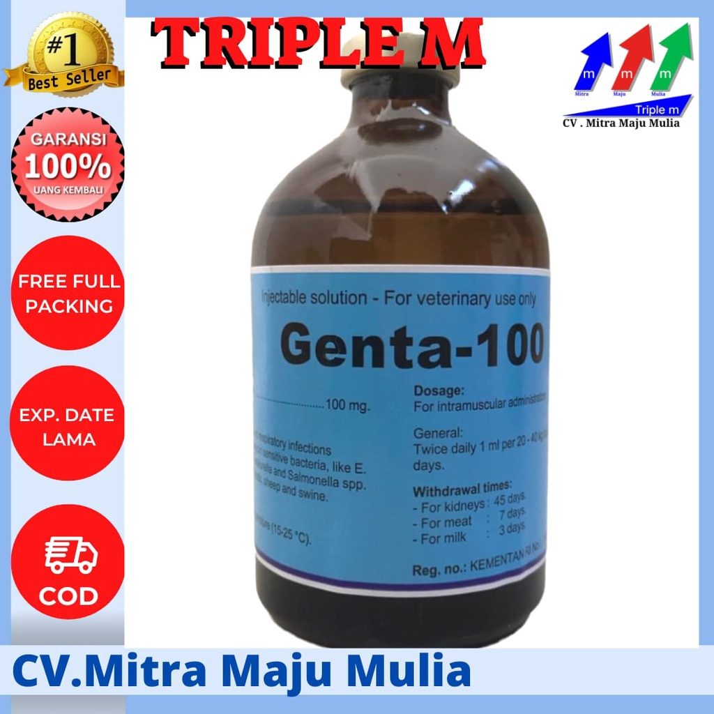 Genta-100 merupakan antibiotika aminoglycoside, bersifat bakterisidal, bekerja dengan menghambat sintesis protein bakteri. Mengobati Infeksi saluran pernafasan, pencernaan dan saluran Urinasi Hewan.