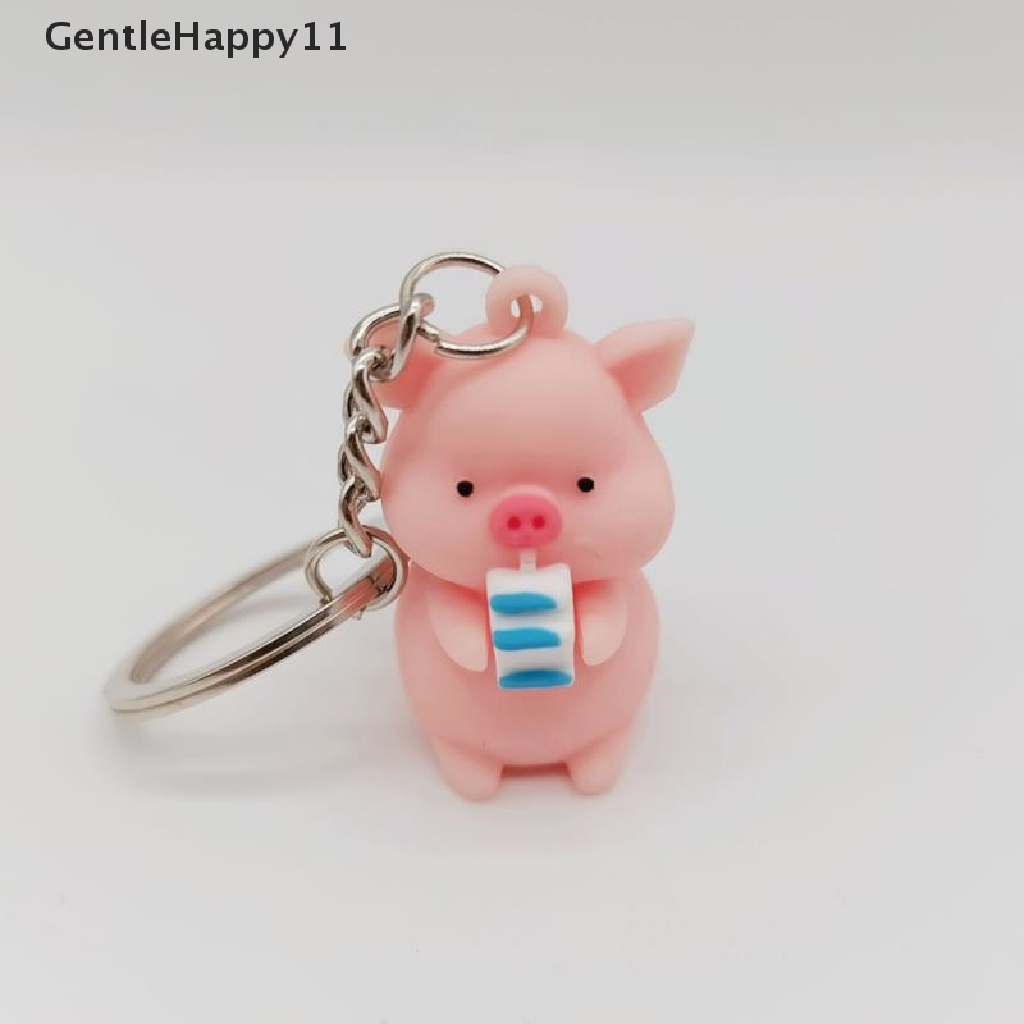 Gentlehappy Kartun Lucu Jas Hujan Piggy Doll Gantungan Kunci Memegang Susu Babi Kunci Cincin Tas Liontin id