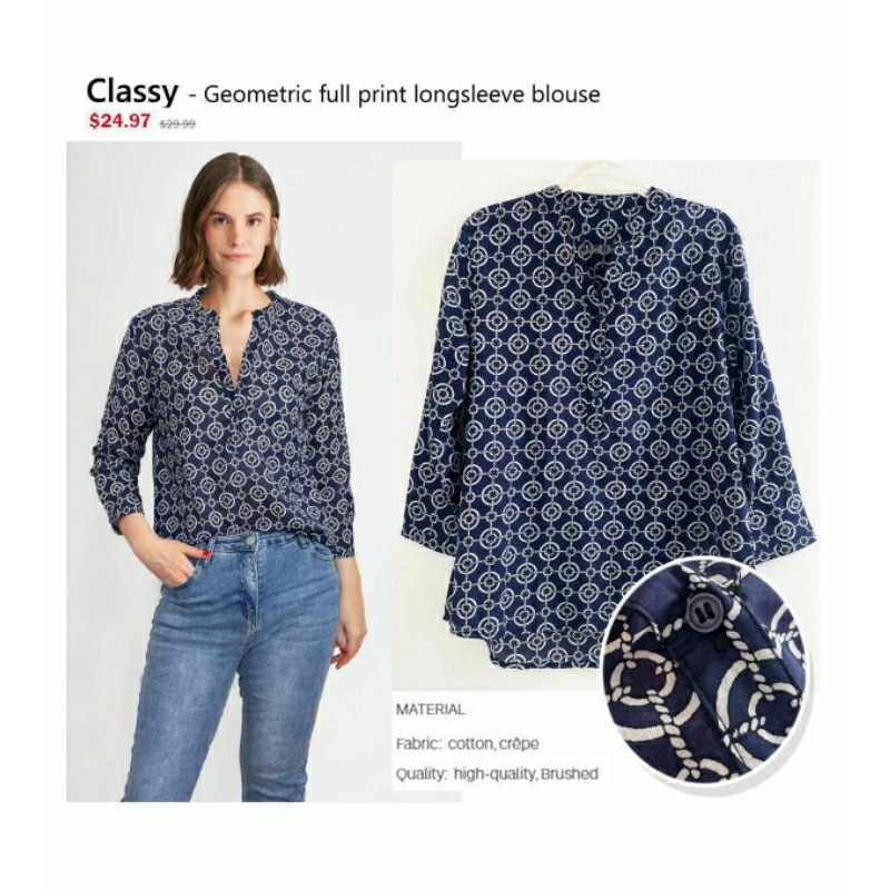 So geometric full print longsleeve blouse Cakep banget😍