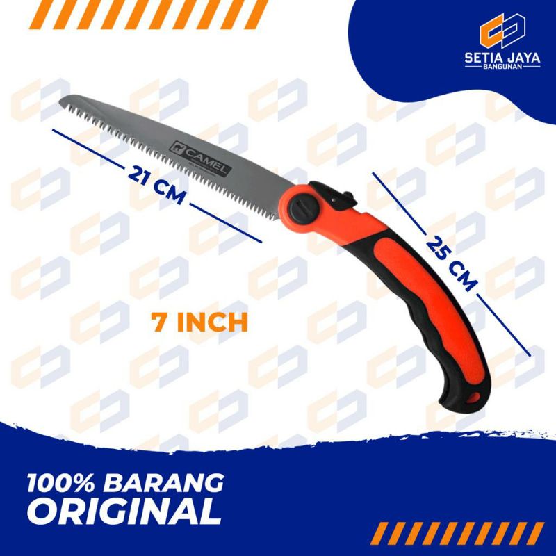 Merek : Camel Tipe : Gergaji Lipat / Serbaguna Ukuran : 7 Inch Bahan : Baja dan Plastik