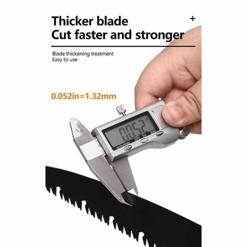 FITUR Dapat Dilipat Bukan hanya pisau saja yang bisa dilipat. Gergaji pun juga bisa demikian. Desain ini tentunya memudahkan Anda membawanya atau bahkan menyimpannya di saku celana Anda saat Anda bertugas Multifungsi Gergaji Lipat Portabel Pemangkasan Gergaji Tangan Lipat Pemangkasan Alat Berkebun DIY Woodworking Alat Tangan Fitur 1.Tiga permukaan pemotongan untuk memotong hingga 50% lebih cepat dari gergaji tangan tradisional. 2. Terbuat dari pisau baja 65Mn yang dikeraskan sepenuhnya dan pegangan yang nyaman dari TPR 3. Pisau dilipat menjadi pegangan untuk penyimpanan dan transportasi yang nyaman 4. Pisau mengunci posisi terlipat dan tidak dilipat untuk keamanan 5. Ideal untuk berkebun, memangkas, memangkas, menggergaji, berkemah , hiking, 6.berburu dan memotong kayu, tulang dan banyak lagi