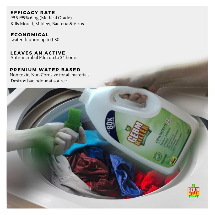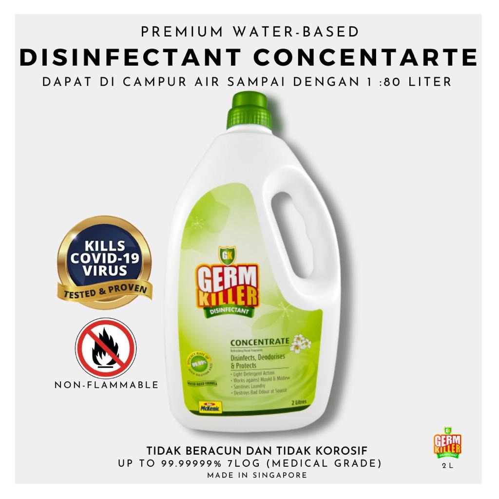 Campuran GK Concentrate bisa mencegah bakteri dan virus selama 24 jam, dan mehilangkan bakteri dan jamur penyebab bau. Selain itu, untuk GK Concentrate dilengkapi juga dengan natural citronella sehingga bisa menjauhkan nyamuk/serangga lainnya dari ruangan / benda-benda yang sudah di cuci dengan GK concentrate.