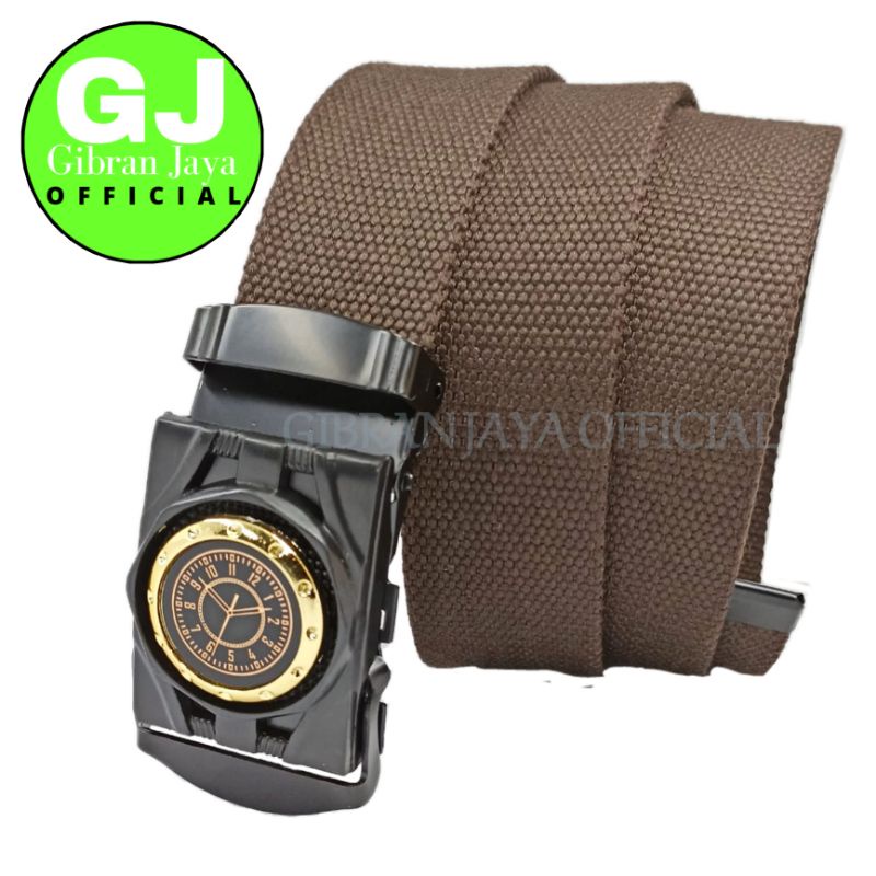 Detail Gesper Ikat Pinggang Katun Pria dan Wanita model Jepit Variasi Sticker Jam Classic