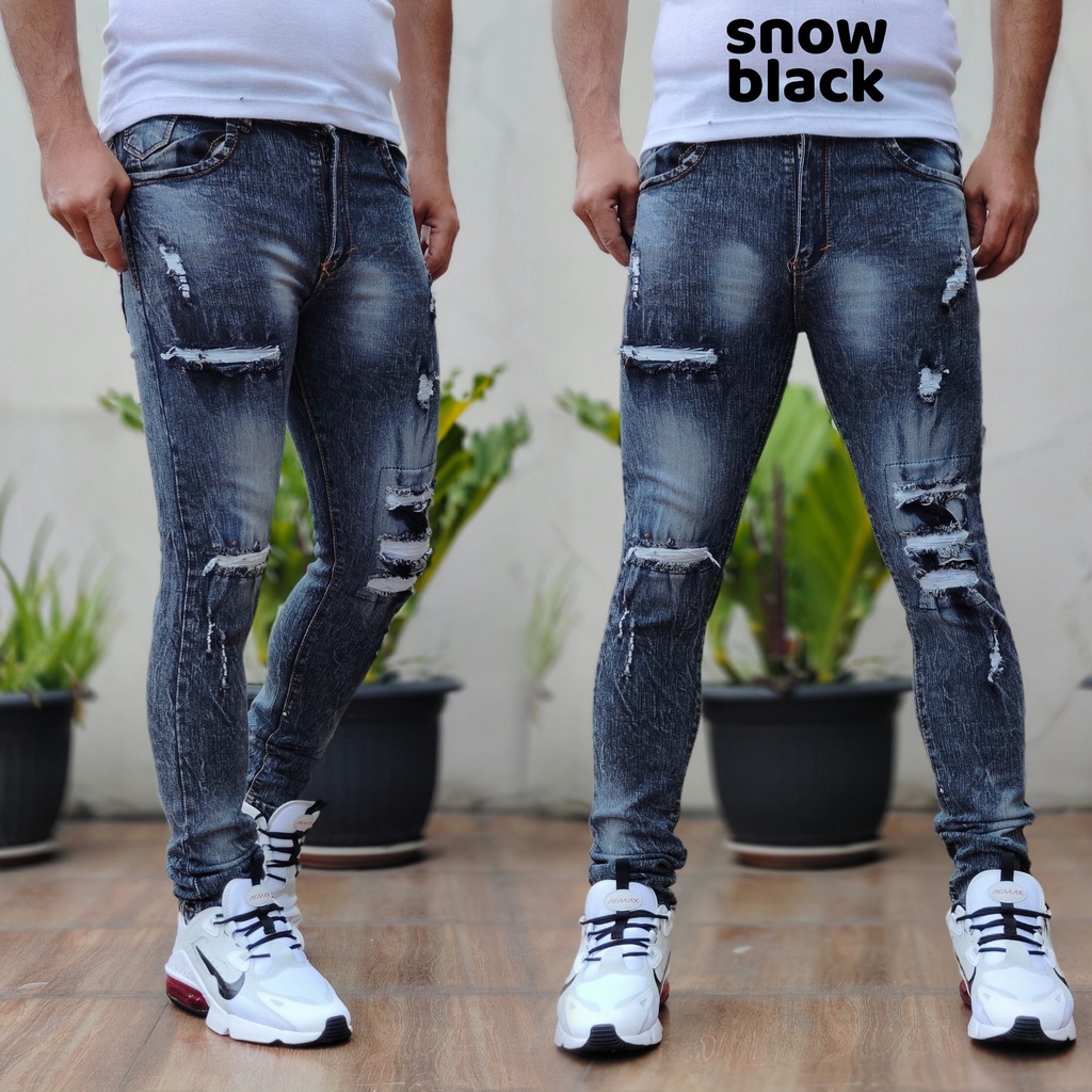 GEVAR - Celana Jeans Ripped Ringkle Garis Slimfit Jeans Skinny Pria