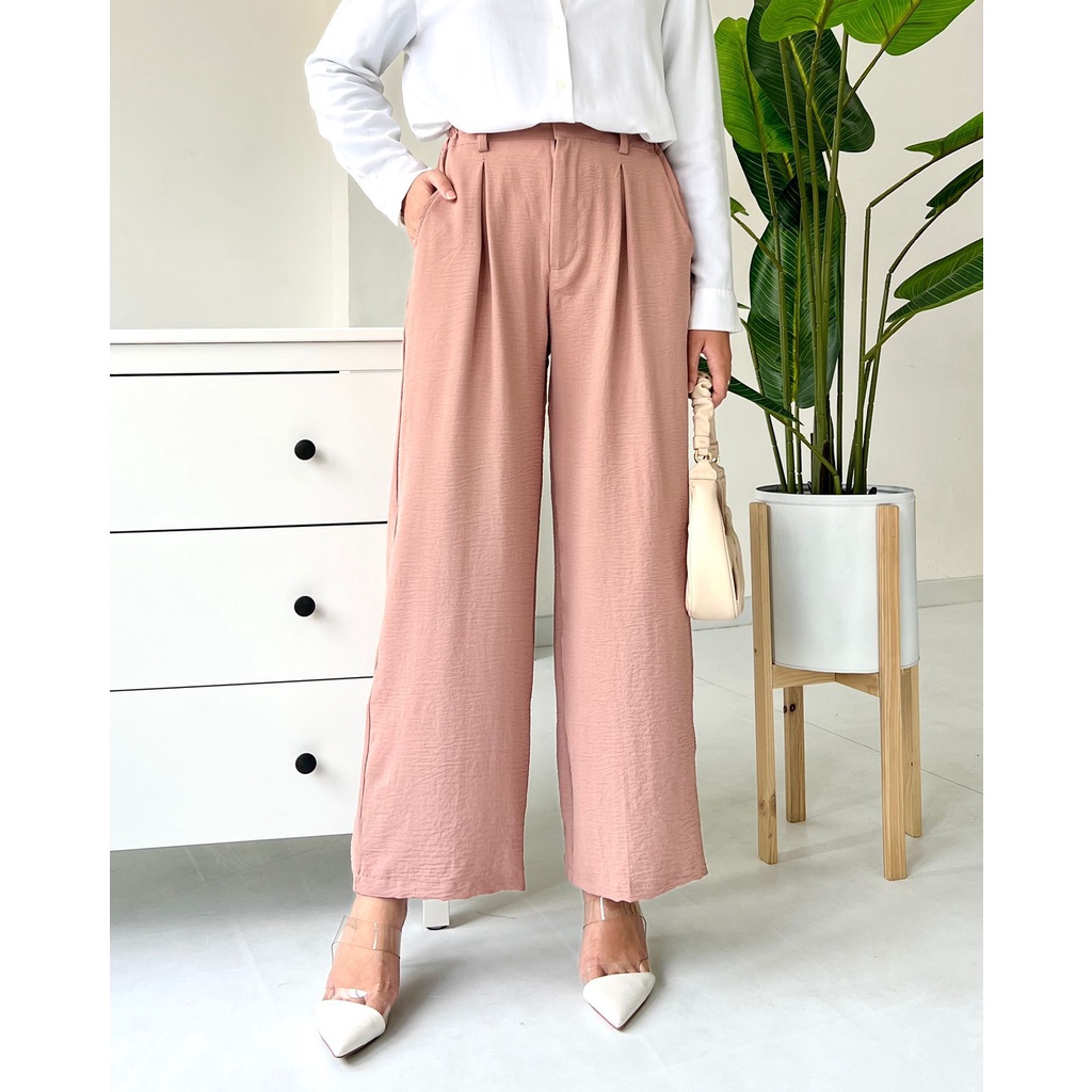 Material bahan diario airflow. Bahannya bertekstur crinkle, ringan, tidak panas, ironless, dan flowy, jatuhnya cantik saat dipakai. ✔️ Bagian pinggang ada detail karet samping kanan dan kiri ✔️Ada detail kancing kait dan zipper dibagian depan ✔️Ada detail belt loop dibagian pinggang Tersedia 6 pilihan warna dan 1 Ukuran