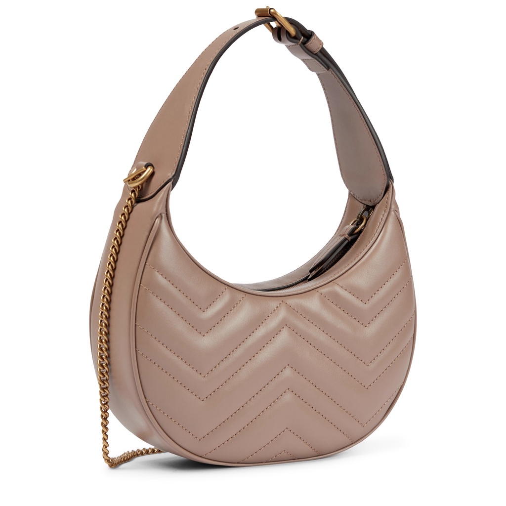 Detail GG Marmont Mini Half-Moon Leather Shoulder Bag Nude GHW (20.5 x 10.5)