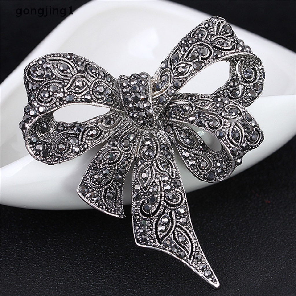 Detail Ggg Kristal Berlian Imitasi Busur Bros Pin Wanita Kemeja Kerah Besar Ikatan Simpul Bros Perhiasan ID