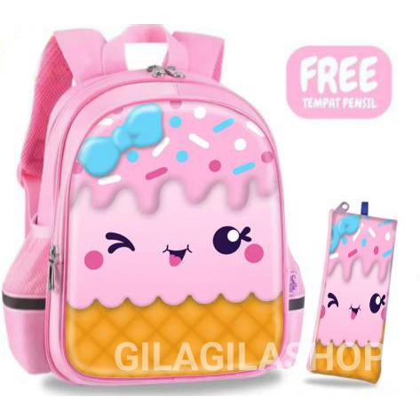 GGS tas sekolah es cream anak perempuan tas ransel sekolah sd tas sekolah gambar lucu tas sekolah tas backpack new 2023