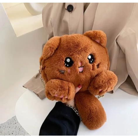 Detail GGS Tas Selempang Boneka Kucing FYKACU Tas tali rantai Tas bulu korean style GAYA ala korea 2023