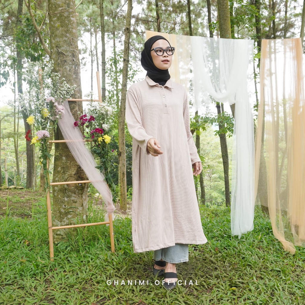 Detail Ghanimi - Audrey Tunik / Tunik knit rib / Tunik lengan panjang kasual formal / atasan kerja / baju kerja / Tunik polos timeless / Tunik slim fit kerah / Tunik panjang hijab