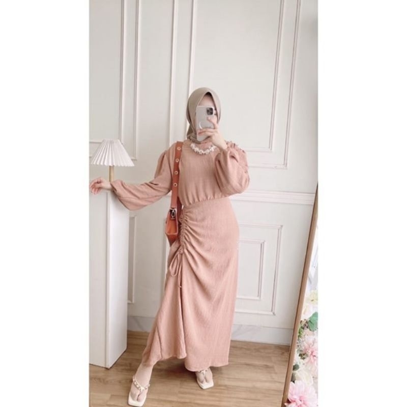 Detail GHEA DRESS GAMIS CRINCLE SERUT KONDANGAN TERBARU HOMEDRESS GAMIS PUTIH POLOS KEKINIAN