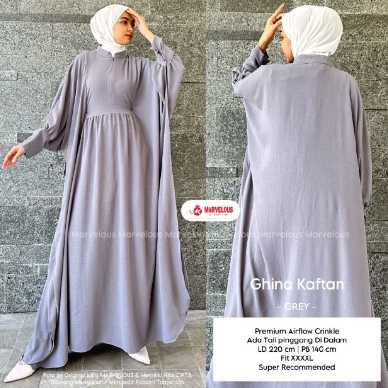 GHINA KAFTAN BY MARVELOUS / KAFTAN DRESS POLOS MUSLIMAH / Kaftan airflow wanita