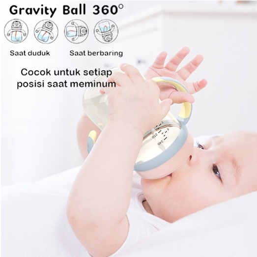 Fungsi Gravity Ball 360⁰ : Sedotan dilengkapi dengan teknologi pemberat gravitasi sehingga cocok untuk setiap sudut posisi si Kecil saat meminum, baik saat duduk maupun saat berbaring.