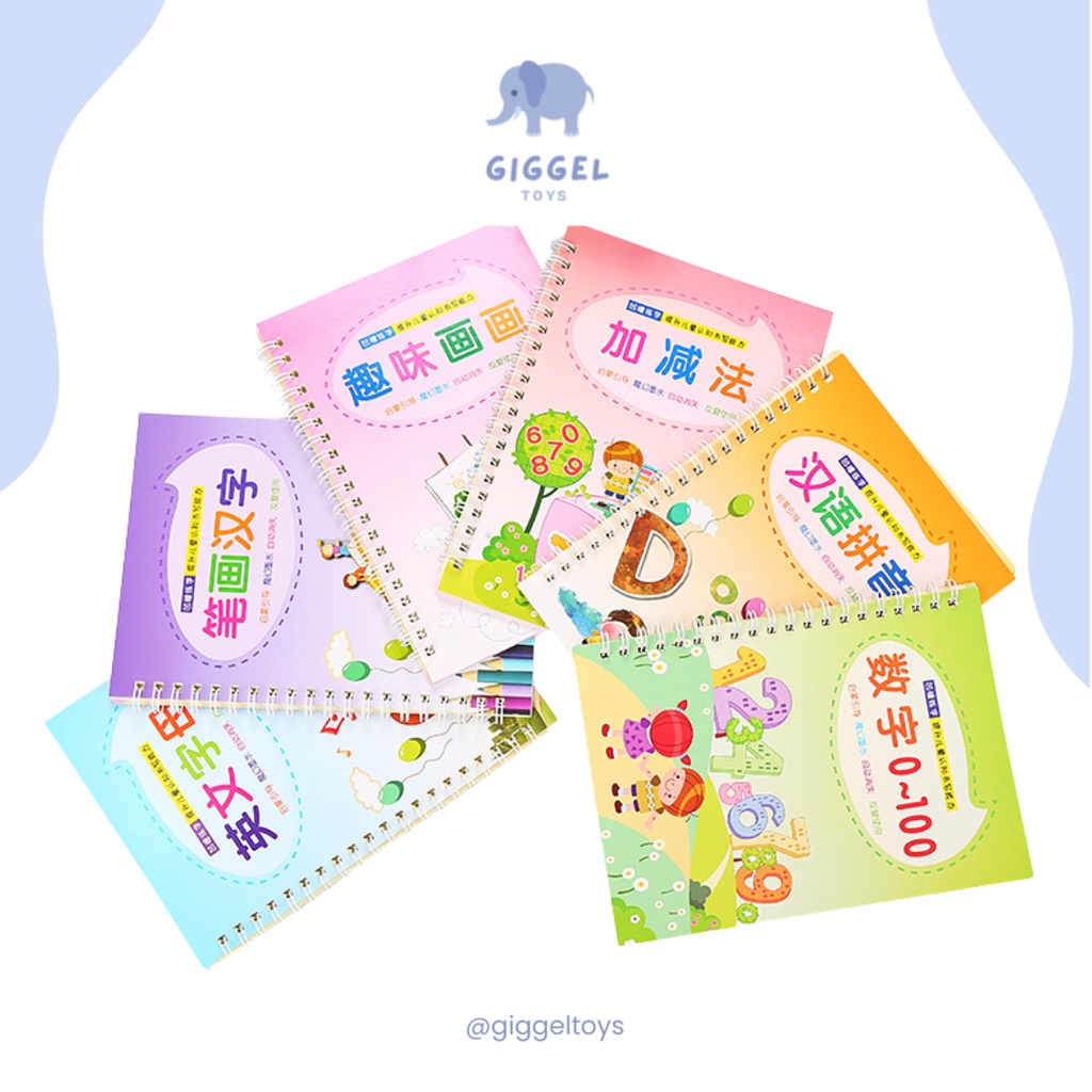 Buku & Alat Tulis > Buku & Alat Tulis Lainnya > [ Giggel ] Sank Magic Book / Practice Book 1 Set / Buku Latihan Menulis Anak / Buku Belajar Menulis Huruf dan Angka / Buku Panduan Menulis Anak Paud