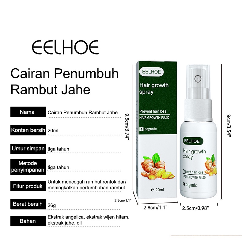 -------- 🤗Informasi Produk-🤗 ------- Jenis barang: EELHOE Semprotan Pertumbuhan Rambut Jahe Berat Produk: 20ML Bahan produk: Akar jahe, Wijen hitam, Angelica, Polygonum multiflorum, Daun arborvitaebahan lainnya Umur simpan: 3 tahun