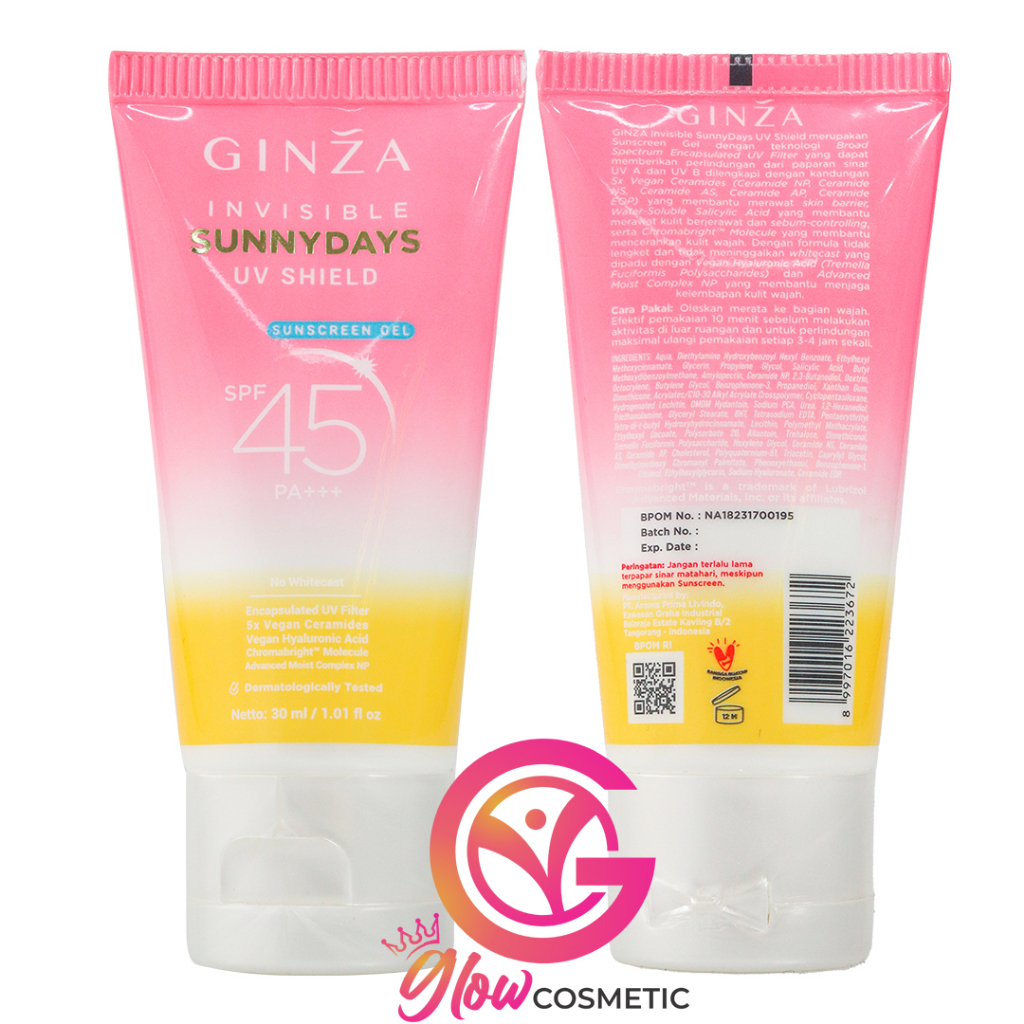 Detail GINZA INVISIBLE SUNNY DAYS UV SHIELD SUNSCREEN GEL SPF 45 PA+++