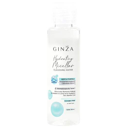 Ginza Hydrating Micellar Cleansing Water 100ml Fungsi : Membersihkan make up ringan dan sunscreen pemakaian sehari-hari tanpa membuat kulit kering dan merusak skin barrier serta membantu menghidrasi dan melembabkan kulit wajah