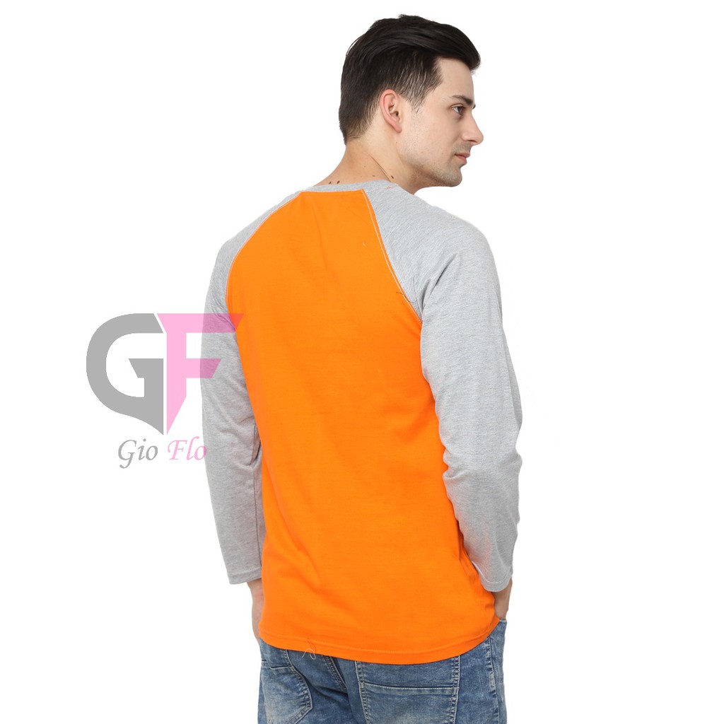 Detail GIOFLO Kaos Tshirt Raglan Pria Simple Keren Orange Lengan Abu / PLS 165