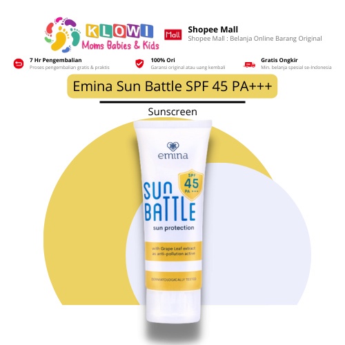 Detail Girlsneed77 EMINA SUN BATTLE SPF 30 / SPF 45 / 23ml / 60ml Skincare Sunblock Pelindung dari Sinar Matahari Sunscreen UV Sun Screen Wajah