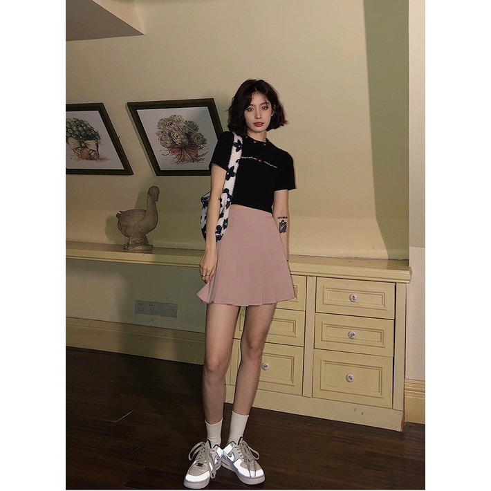 Detail GirlWish Fashion Korean Sexy Crop Top Round Neck Kaos Sexy Crop Wanita 1327
