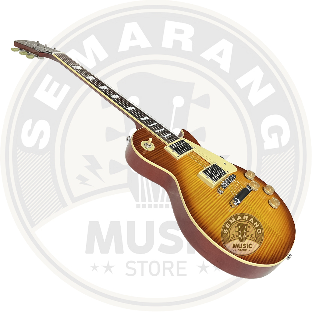 Spesifikasi : Body Mahogany Neck Mahogany Fingerboard Rosewood Tanam besi/trushroad bisa di setting double action List Kuning Gading Tuning Machine Dryer Tulip 22 Fret Double Pickup GnB Senar D'Addario Fret steel/baja tebal Tremolo Standart Les Paul Playbility nyaman di tangan Jarak senar rendah sehingga nyaman dimainkan Suara terjamin mantap Finishing mulus