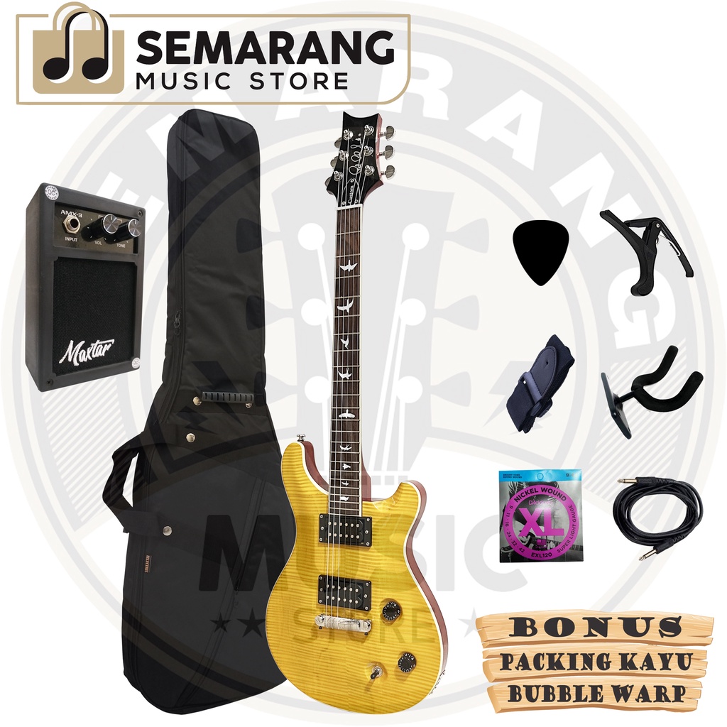 Spesifikasi : Body Mahogany Neck Mahogany Fingerboard Rosewood Tanam besi/trushroad bisa di setting double action List Kuning Gading Tuning Machine Dryer glover 22 Fret Double Pickup GnB Senar D'Addario Fret steel/baja tebal Tremolo Standart PRS Paul Reed Smith Playbility nyaman di tangan Jarak senar rendah sehingga nyaman dimainkan Suara terjamin mantap Finishing mulus