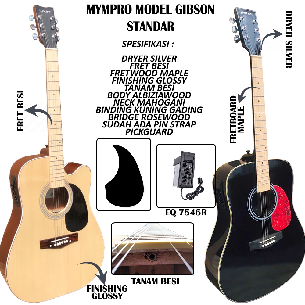 PERBEDAAN : STANDAR : DRYER SILVER, FRET BESI, FRETWOOD MAPLE, FINISHING GLOSSY, TANAM BESI, BODY ALBIZIAWOOD, PICKGUARD - Neck mahogany - Binding Kuning Gading - bridge :rosewood - Sudah ada pin,buat tempat sabuk tali gitar EQUALIZER 7545R (VARIASI ELEKTRIK)