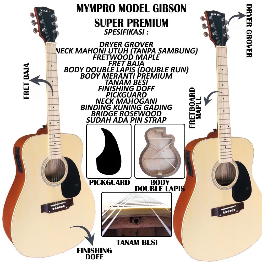 Detail Gitar gibson akustik elektrik stang utuh body double run