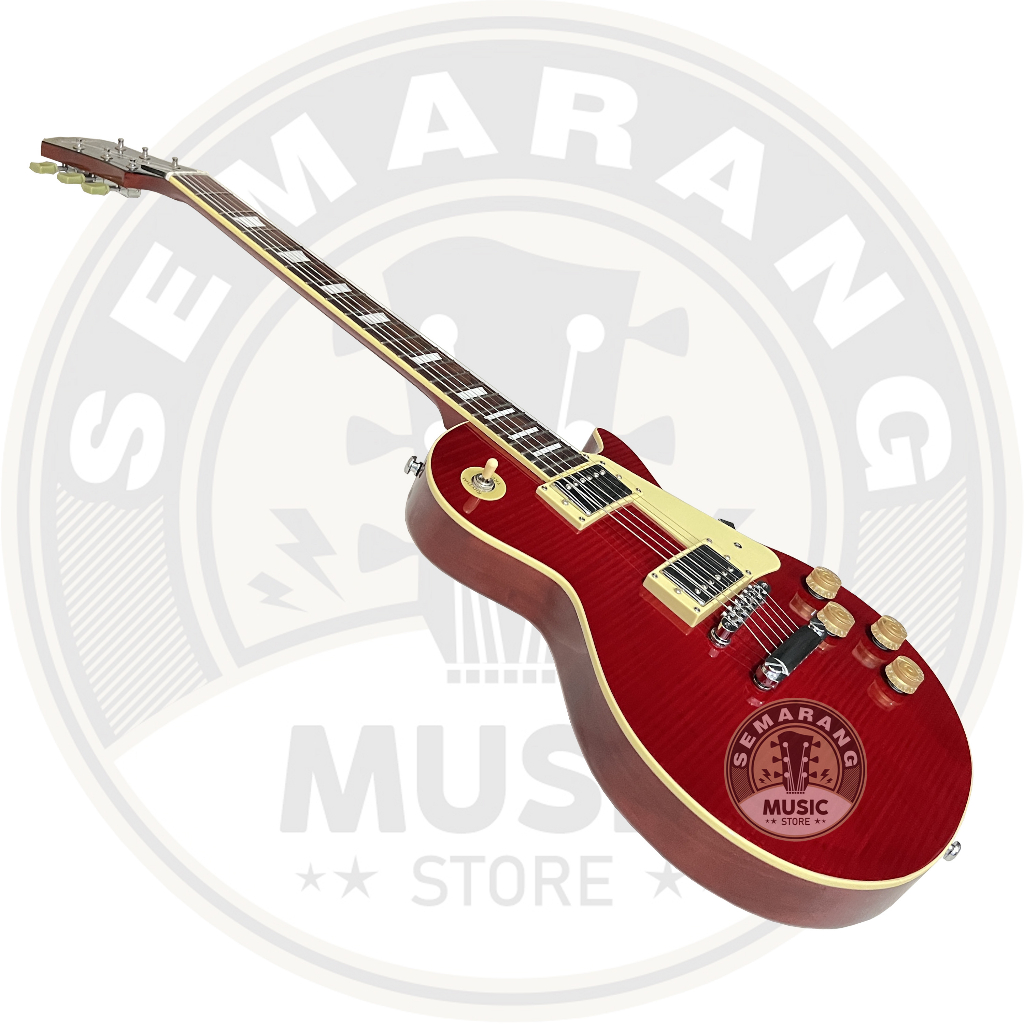 Spesifikasi : Body Mahogany Neck Mahogany Fingerboard Rosewood Tanam besi/trushroad bisa di setting double action List Kuning Gading Tuning Machine Dryer Tulip 22 Fret Double Pickup GnB Senar D'Addario Fret steel/baja tebal Tremolo Standart Les Paul Playbility nyaman di tangan Jarak senar rendah sehingga nyaman dimainkan Suara terjamin mantap Finishing mulus