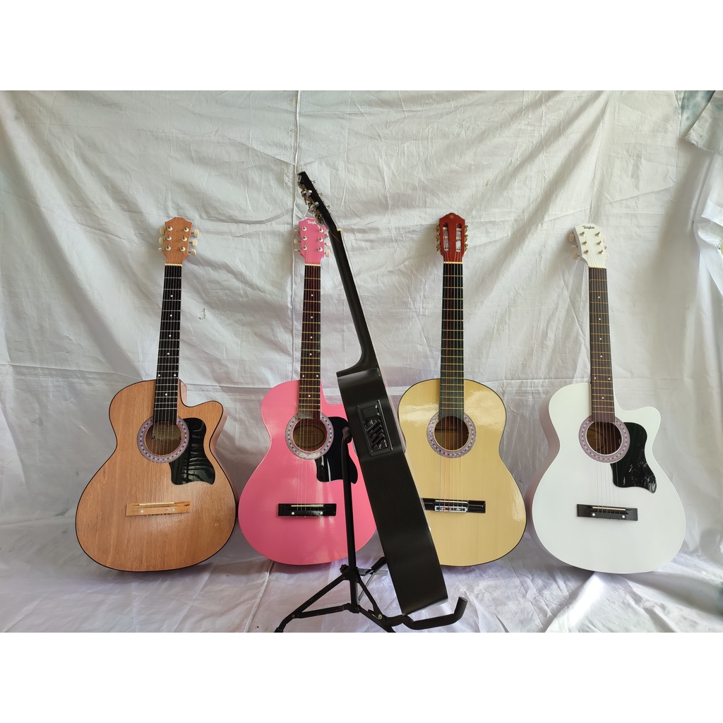 Spesifikasi : Gitar Akustik Elektrik - Dryer Fox ABS - Bridge Albizia - Pickguard - Neck Mahony - Body Albizia - Finishing Glosy - Tanam besi asli bukan Variasi Bisa diatur meluruskan neck yang bengkok