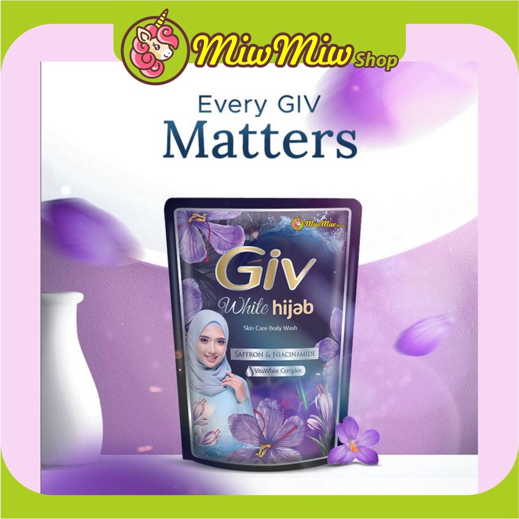 GIV White Hijab - Saffron & Niacinamide Ladies, siapa yang tidak ingin kulitnya cantik berseri kini dan nanti? Yuk jaga kecantikan kulitmu dengan mandi menggunakan GIV White Hijab Saffron & Niacinamide. Dengan ekstrak saffron yang membuat kulit wangi dan niacinamide yang meregenerasi kulit sehingga terlihat awet muda. Dilengkapi dengan kandungan Vita White Complex yang mencerahkan dan meratakan warna kulit.