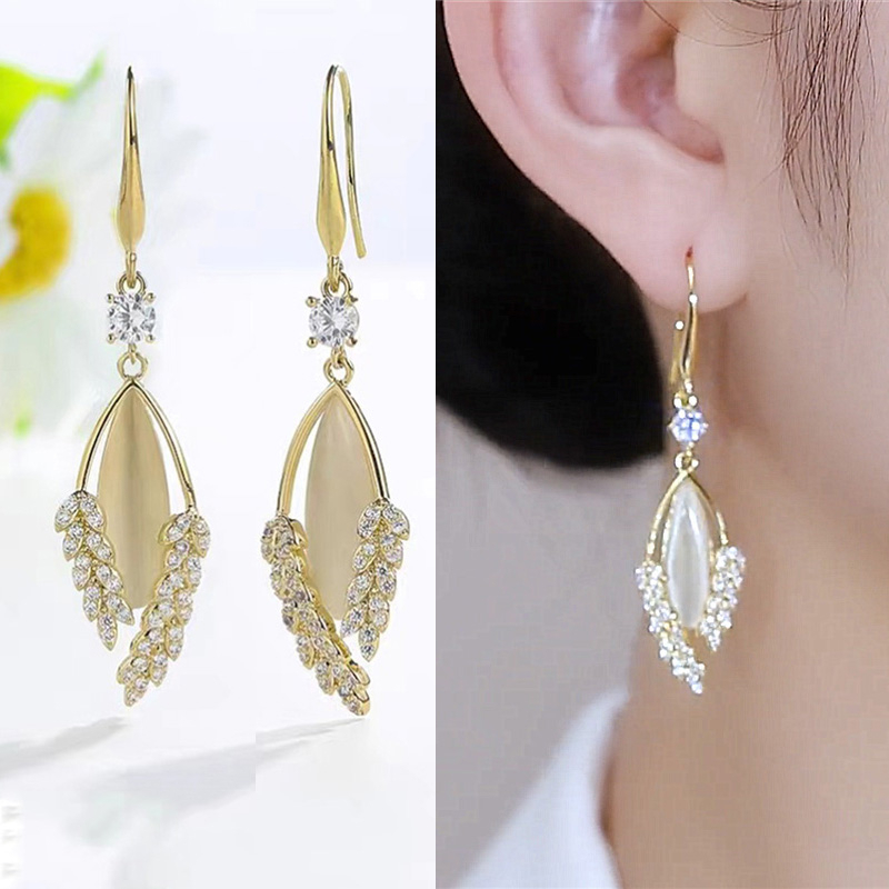Aksesoris Fashion > Anting > Giwang Gandum Elegan Prancis Desain Unik Anting Opal Mewah Ringan Unik