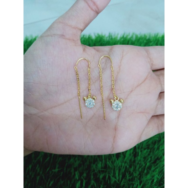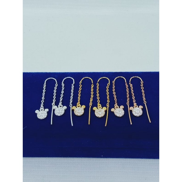 Detail giwang model panjang nori + m . kepala mickey mp / giwang perak asli silver 925 lapis emas? giwang fashion wanita terbaru