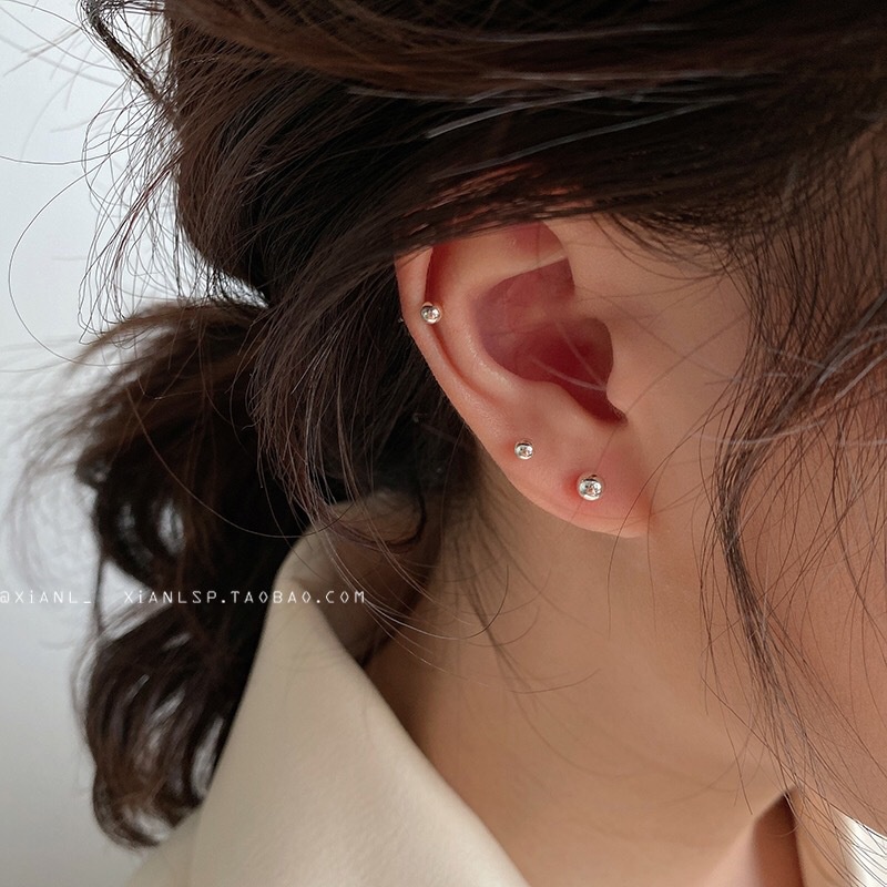 Detail Giwang Telinga Perak Perempuan Lubang Telinga Anting Jarum Perak Anting Kacang Anti Karat