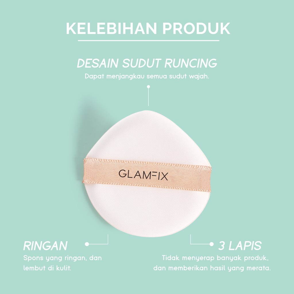 GLAMFIX Professional Aircushion Puf merupakan sponge yang digunakan untuk mengaplikasikan dan meratakan foundation, cushion, atau produk makeup cair lainnya di permukaan kulit agar terbaur sempurna untuk hasil yang natural.